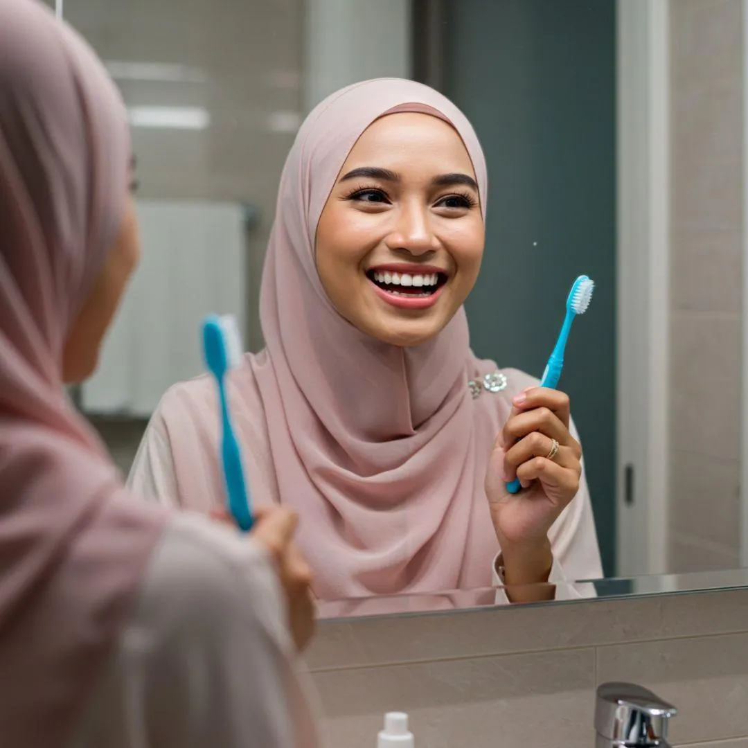 Bangun pagi, senyum depan cermin & nampak gigi bersih, putih & menawan.