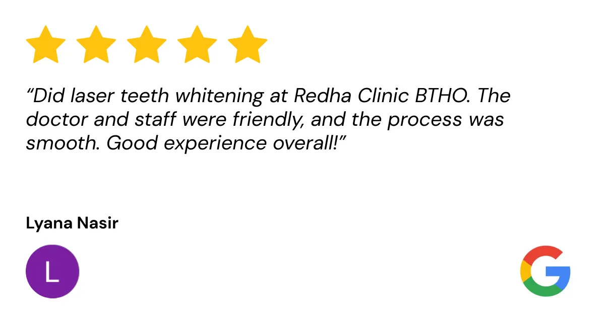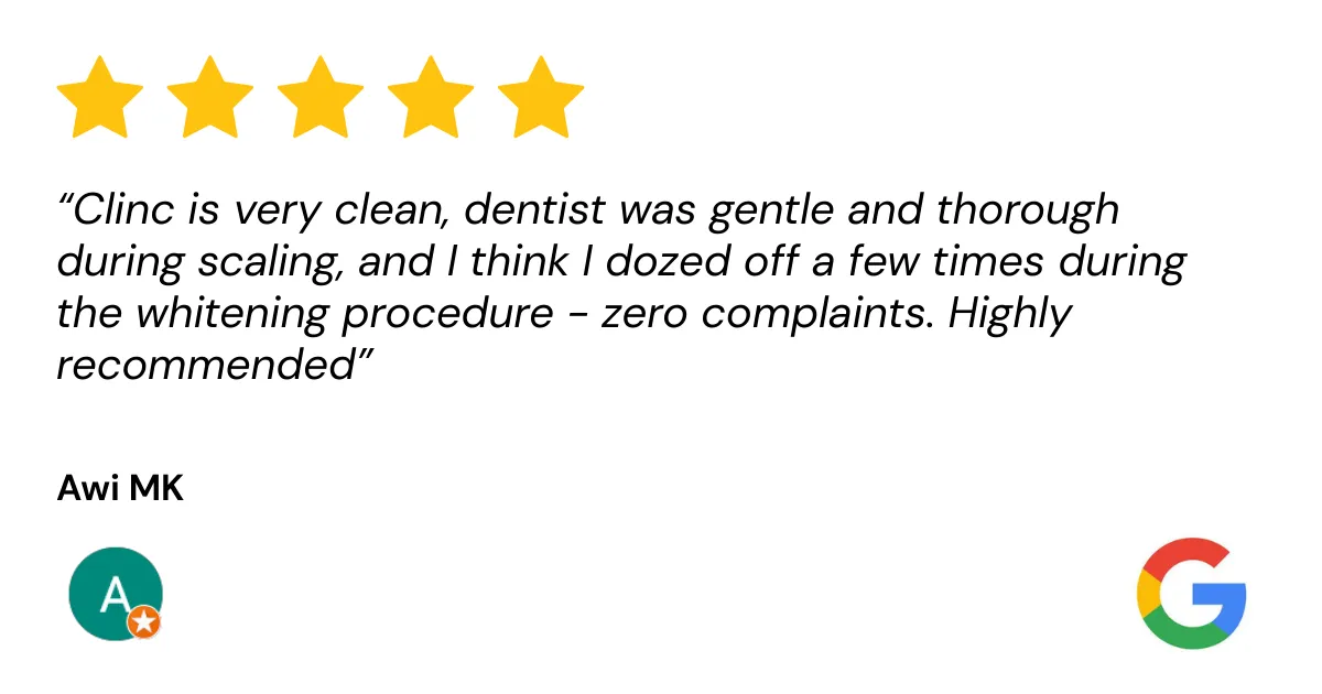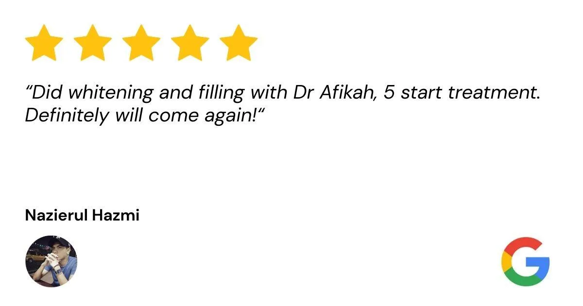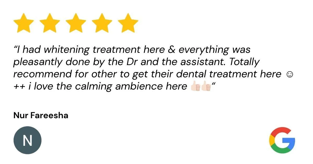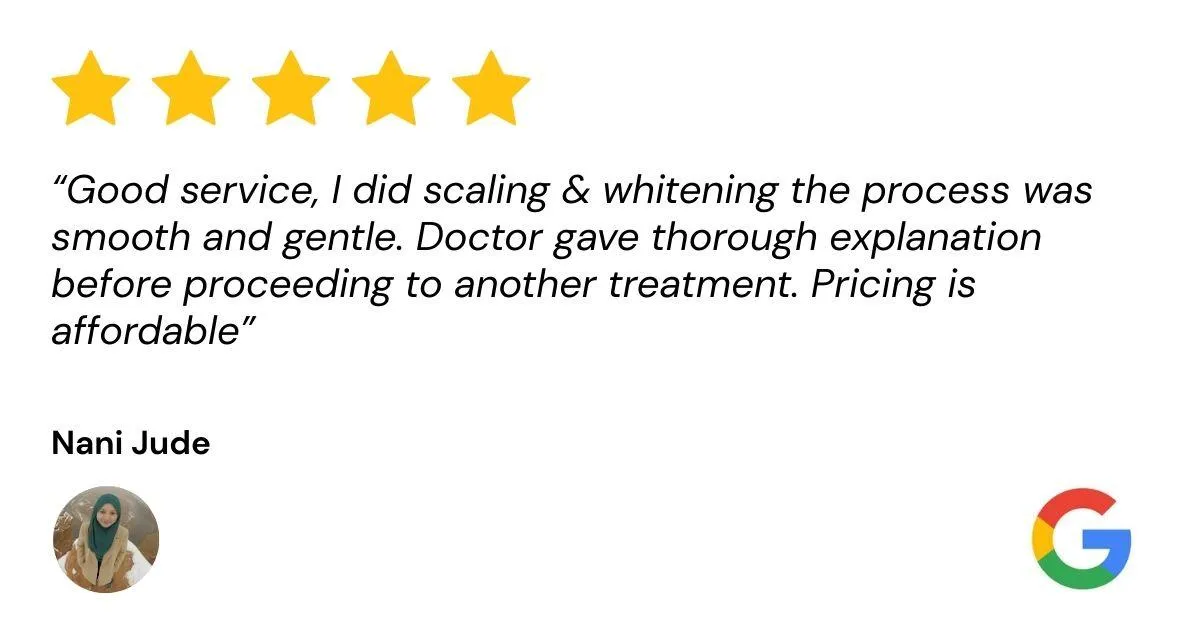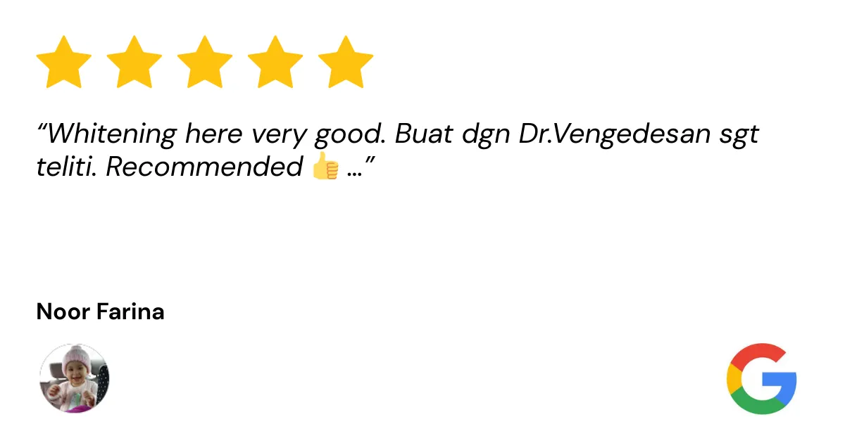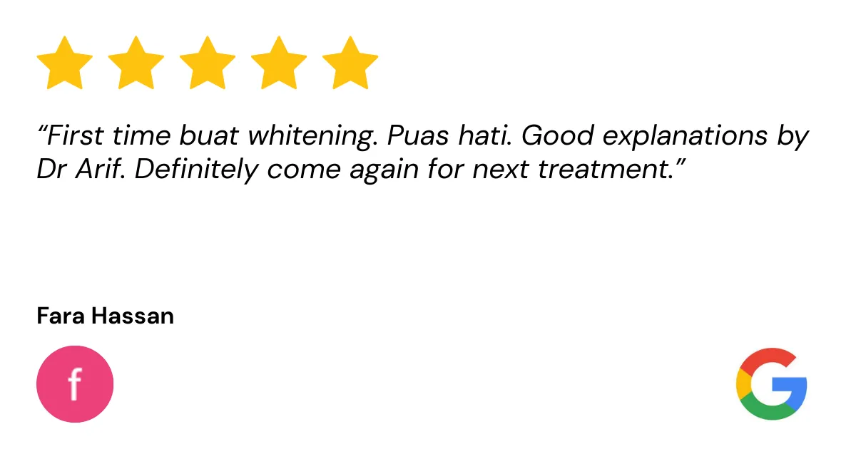 💬 “Saya bukan sahaja dapat gigi putih, tapi juga belajar cara jaga gigi dengan lebih baik. Servis mereka memang terbaik!”