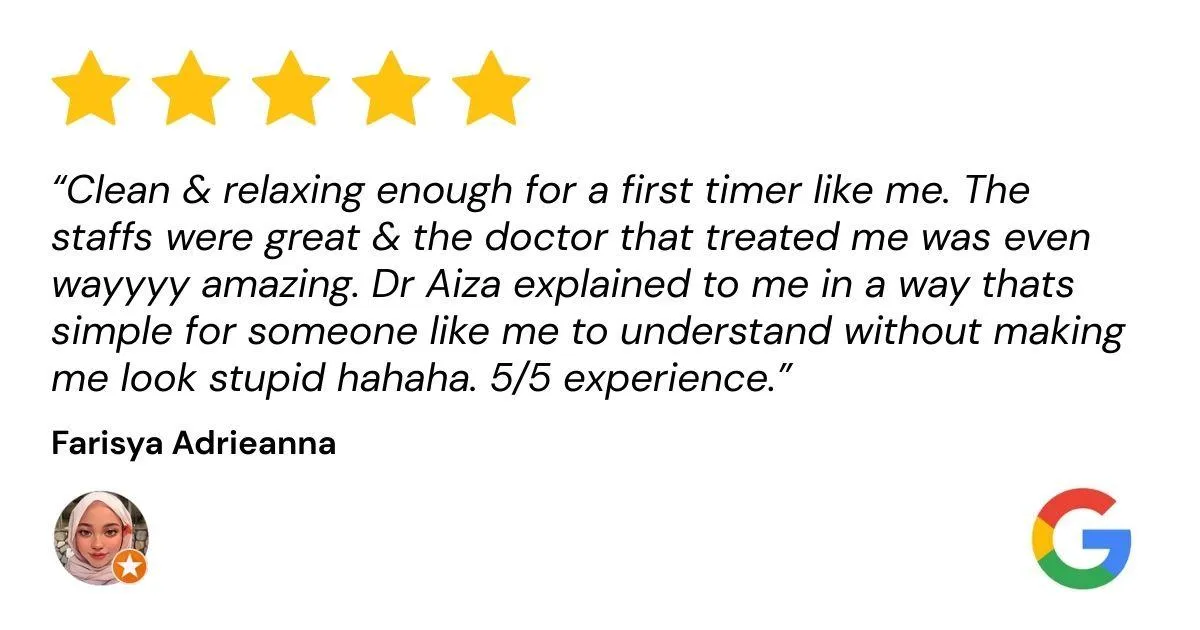 💬 “Saya terkejut dengan hasilnya! Doktor sangat teliti dan prosesnya sangat selesa. Tiada rasa sakit langsung.”